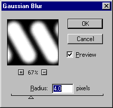 On a real bin the sides have thickness. The holes have a rounded edge at the front. This adds realism to the bin. To do this we need to make an altitude map. An altitude map makes a surface thicker depending on how white the map is at that point. For example gray makes the surface a bit thicker but white makes the surface a lot thicker. Go back to your paint program and open the holes image if it is not already open. Gaussian blur it to mix the edges together. In Photoshop click Filter, Blur, Gaussian Blur and choose how much blur you want. I used 4 pixels radius but it depends on how big you want the rounded bit around the holes to be. Note: To gaussian blur in Paint Shop Pro click Image. Blur, Gaussian Blur.
